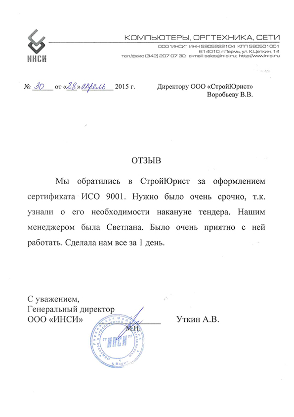Отзывы клиентов "СтройЮрист" по ISO в Нальчике