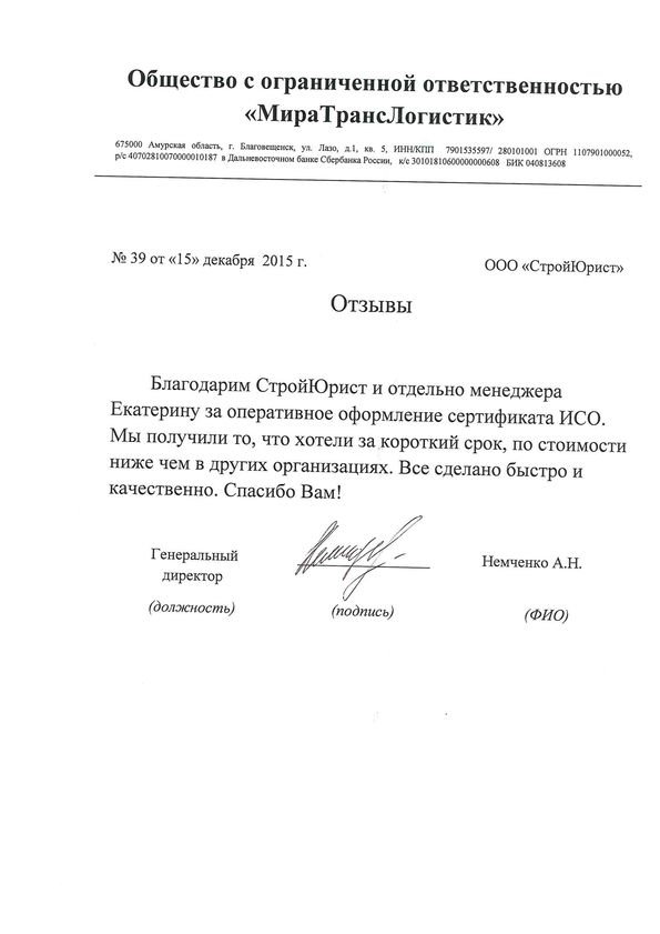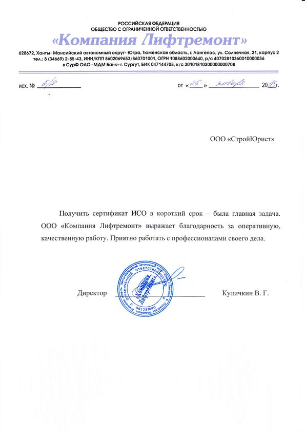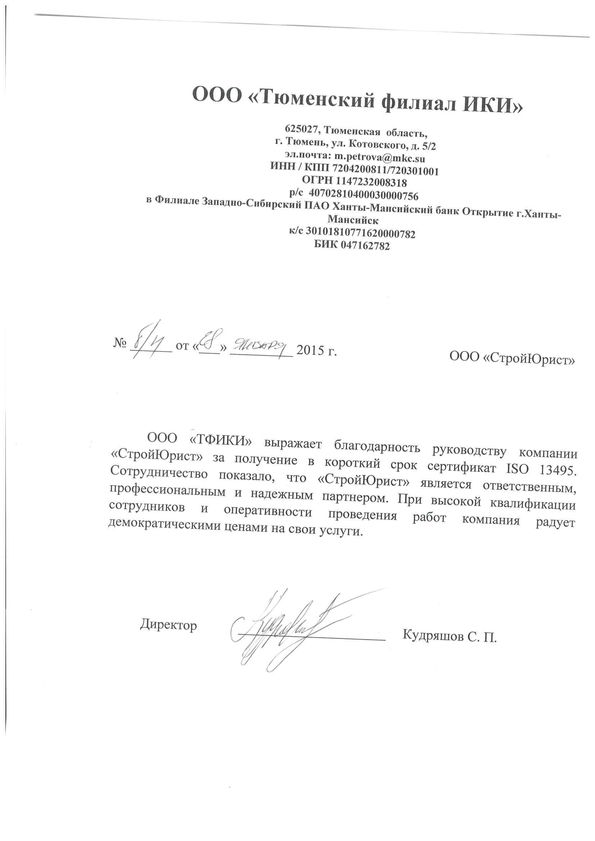 Отзывы клиентов "СтройЮрист" по ISO в Нальчике
