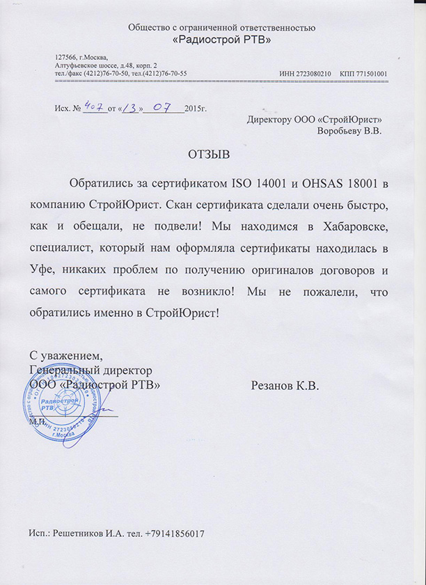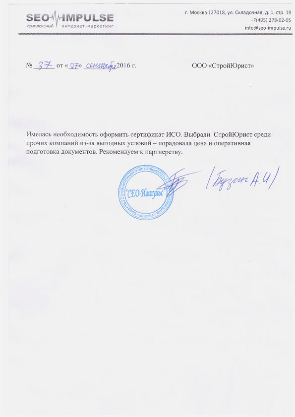 Отзывы клиентов "СтройЮрист" по ISO в Нальчике