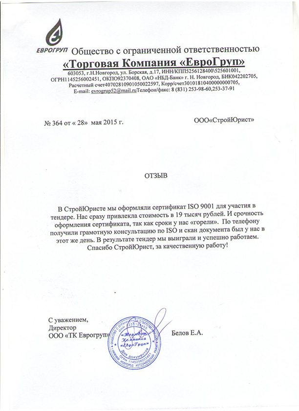 Отзывы клиентов "СтройЮрист" по ISO в Нальчике