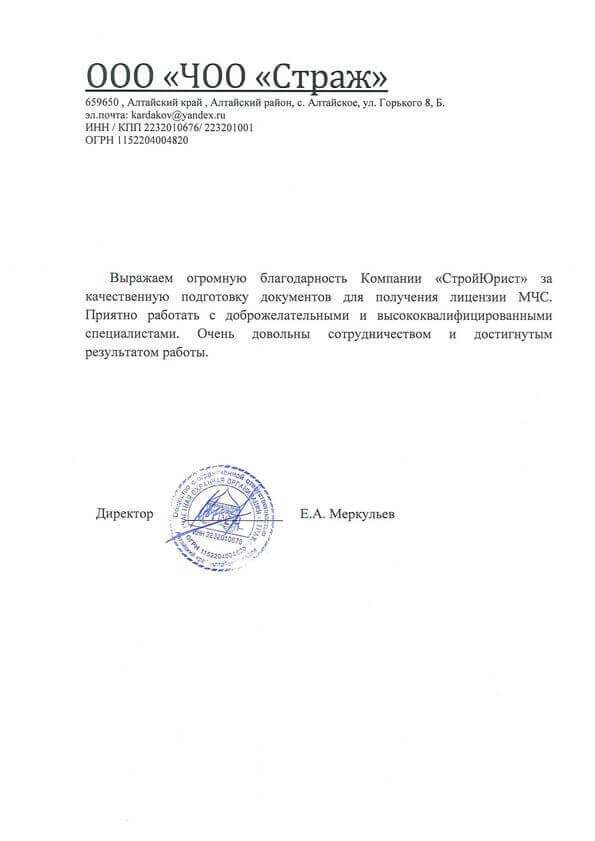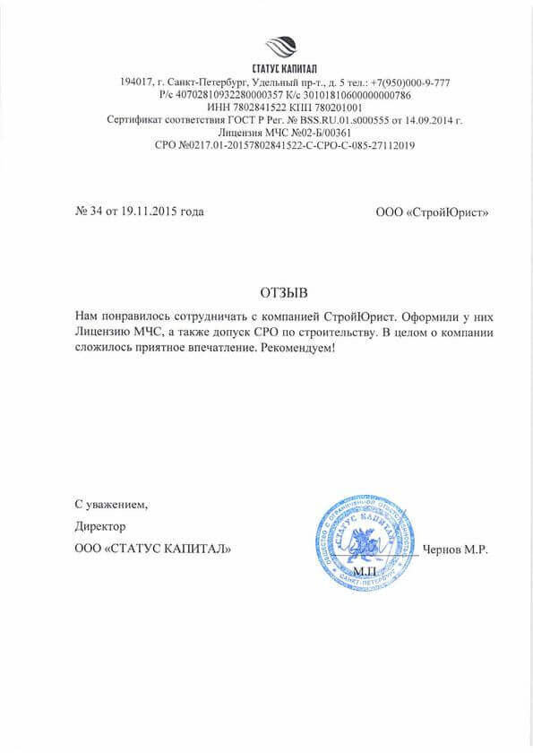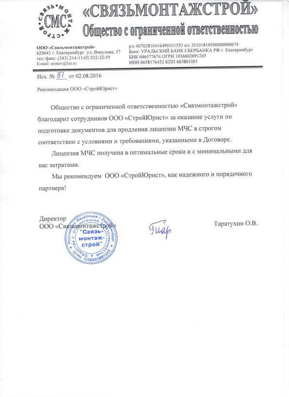 Отзывы клиентов "СтройЮрист" по лицензированию МЧС в Нальчике
