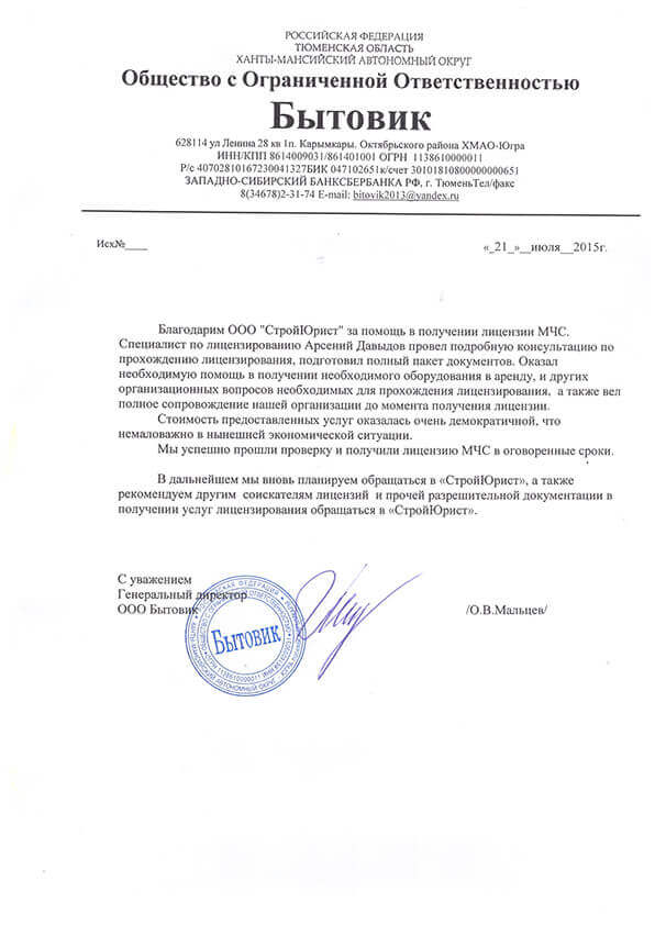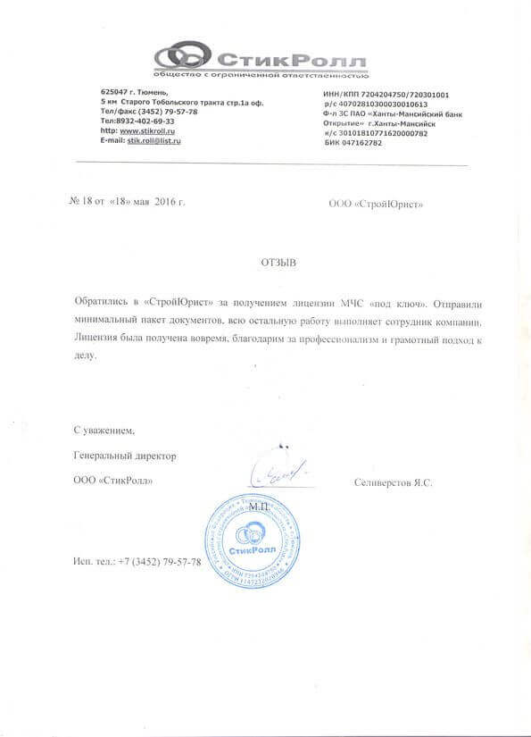 Отзывы клиентов "СтройЮрист" по лицензированию МЧС в Нальчике