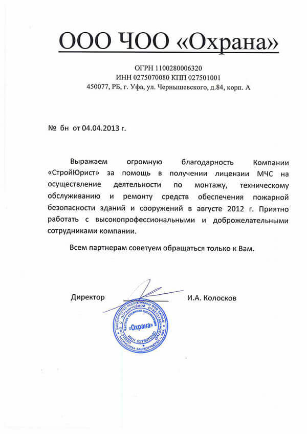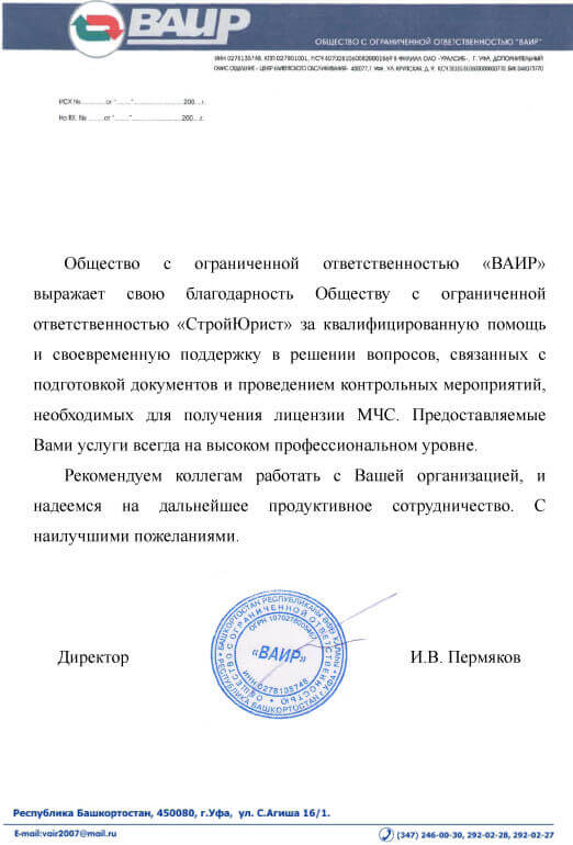 Отзывы клиентов "СтройЮрист" по лицензированию МЧС в Нальчике