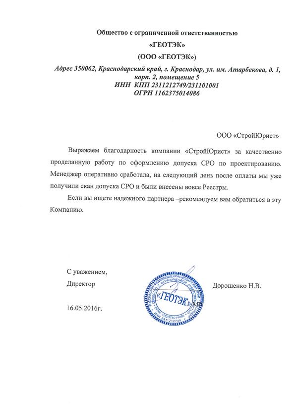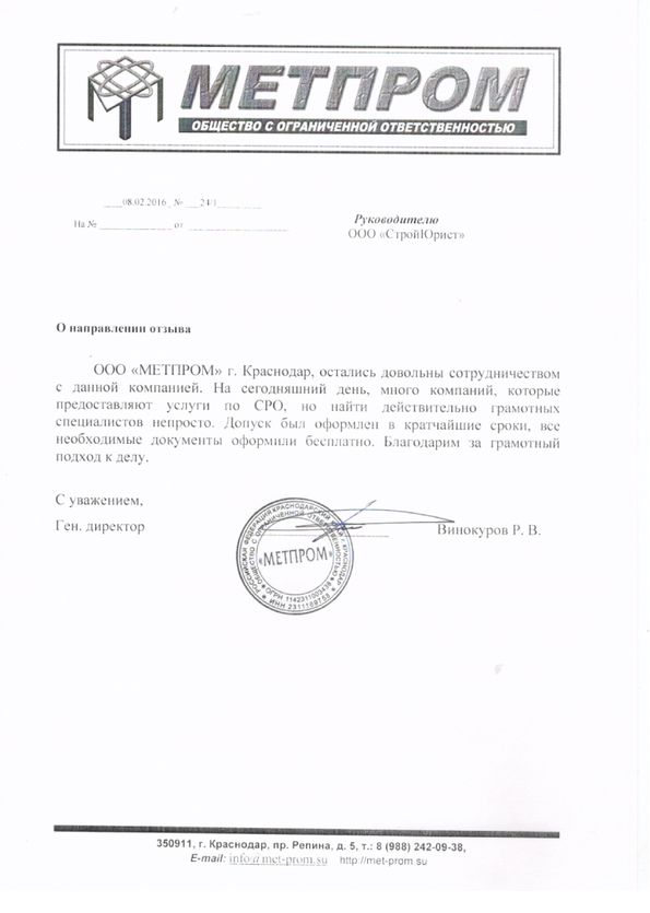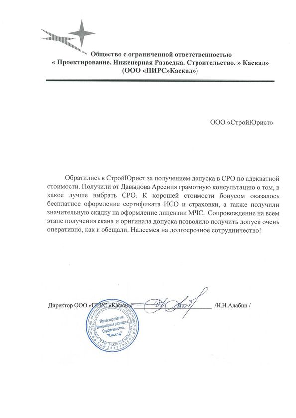 Отзывы клиентов "СтройЮрист" по вступлению в СРО в Нальчике