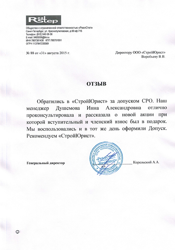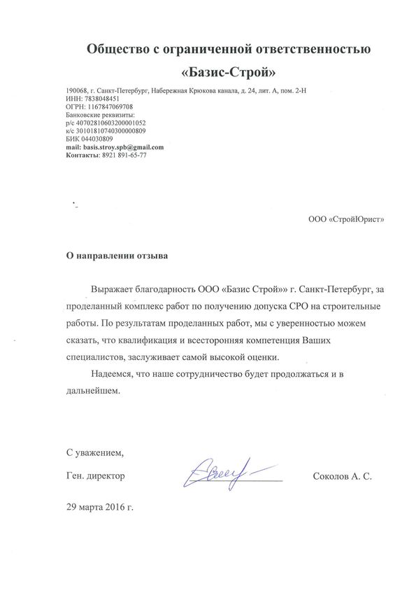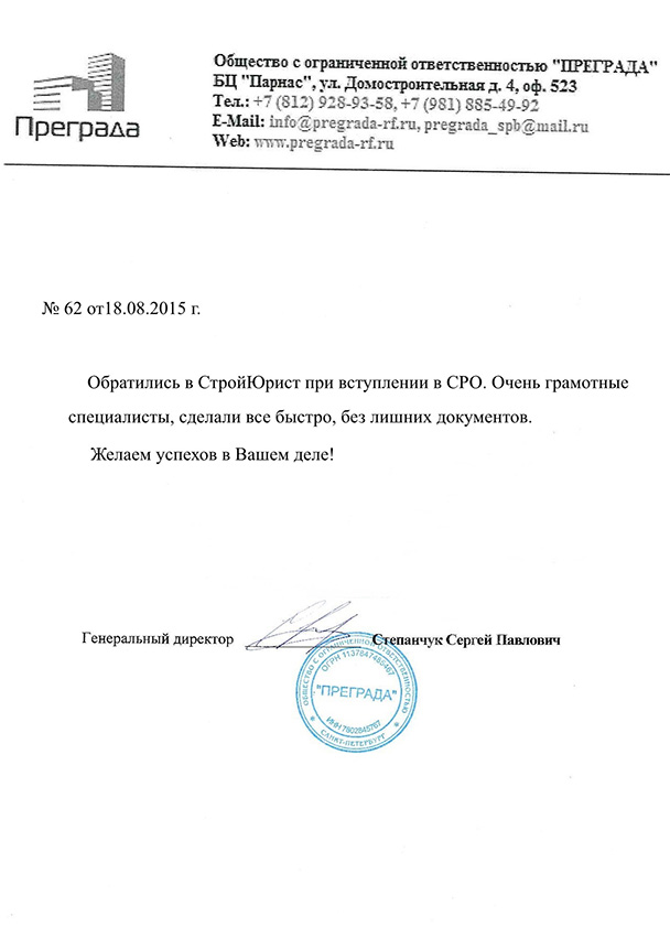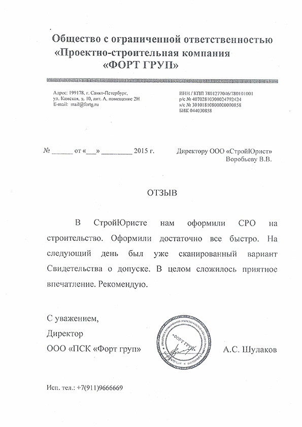 Отзывы клиентов "СтройЮрист" по вступлению в СРО в Нальчике