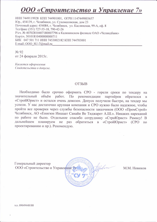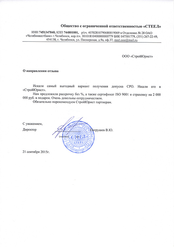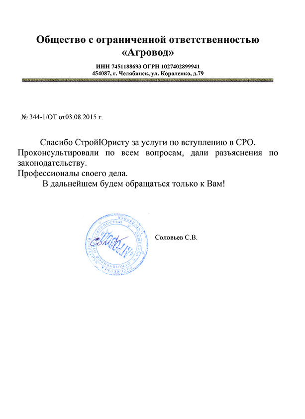 Отзывы клиентов "СтройЮрист" по вступлению в СРО в Нальчике